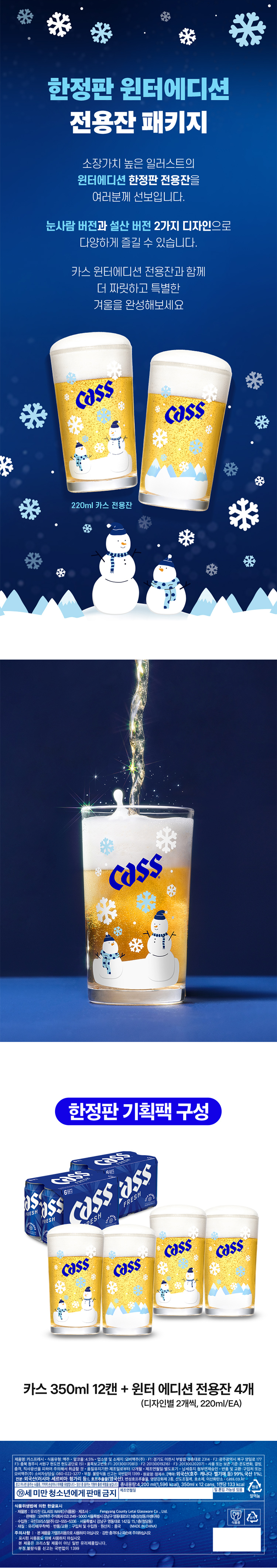 카스 350ml 12캔 + 윈터에디션 전용잔 4개